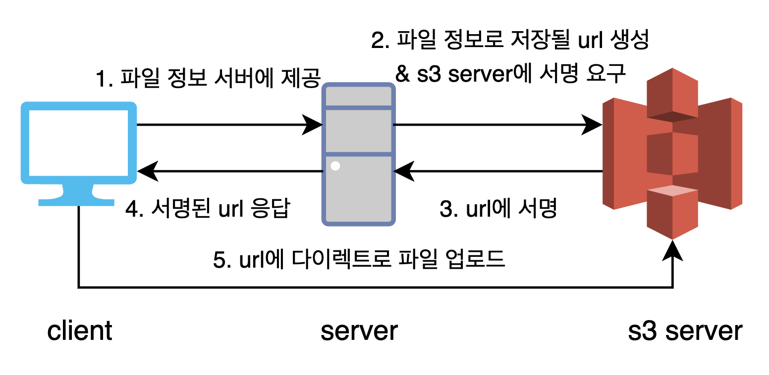 서버에서는 파일을 업로드 할 url만 클라이언트에 제공하고