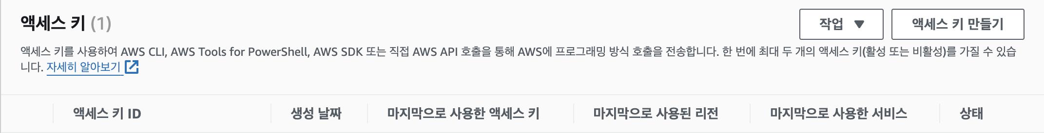 루트 사용자의 액세스 키와 시크릿 키를 발급받기 위해 보안 자격 증명 메뉴에서