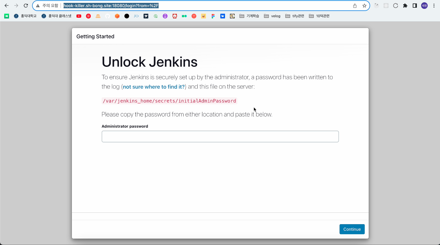 여기에서 바로 젠킨스 화면에 접속하려 했으나