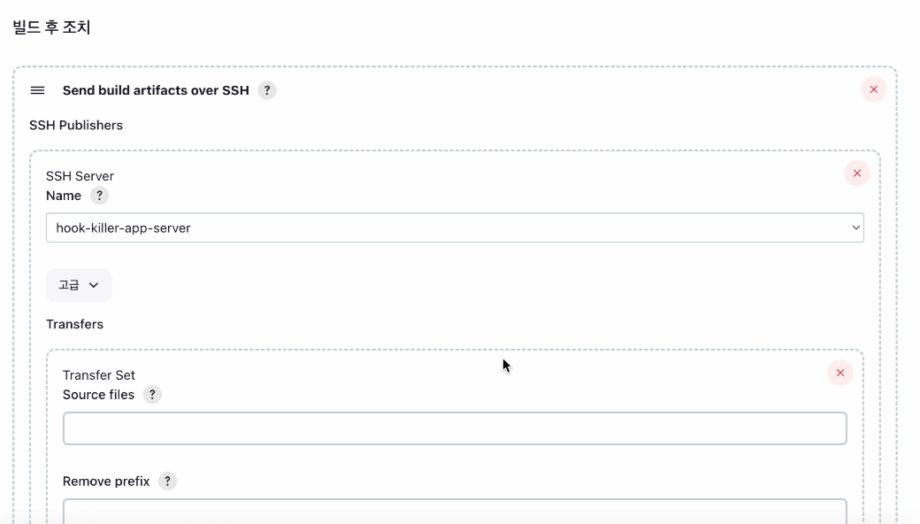 Send build artifacts over SSH 메뉴를 이용할 수 있게 된다.