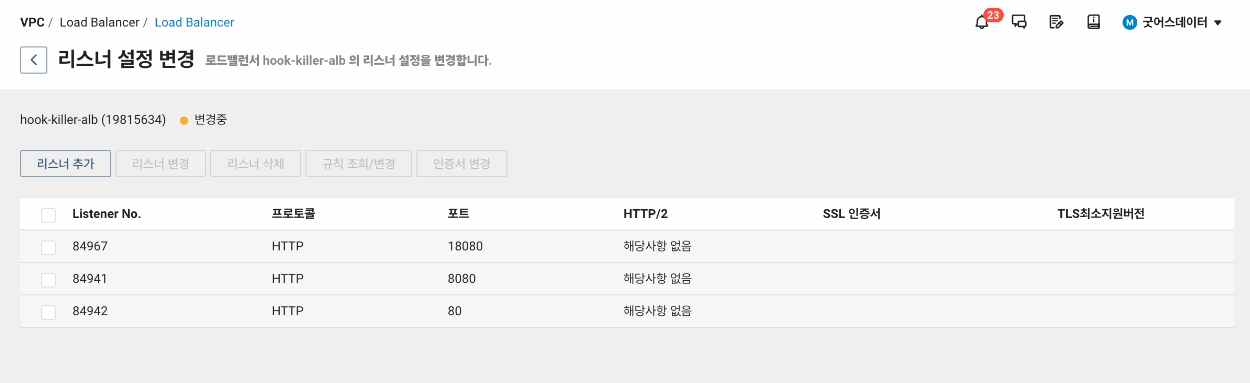 그리고 로드밸런서의 리스너를 추가해주었다.