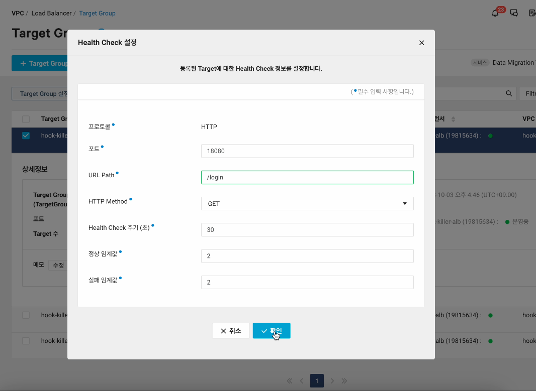 Health Check가 성공하고 hook-killer.sh-bong.site:18080/login이 로드밸런싱 대상이 될 수 있는 것이다.