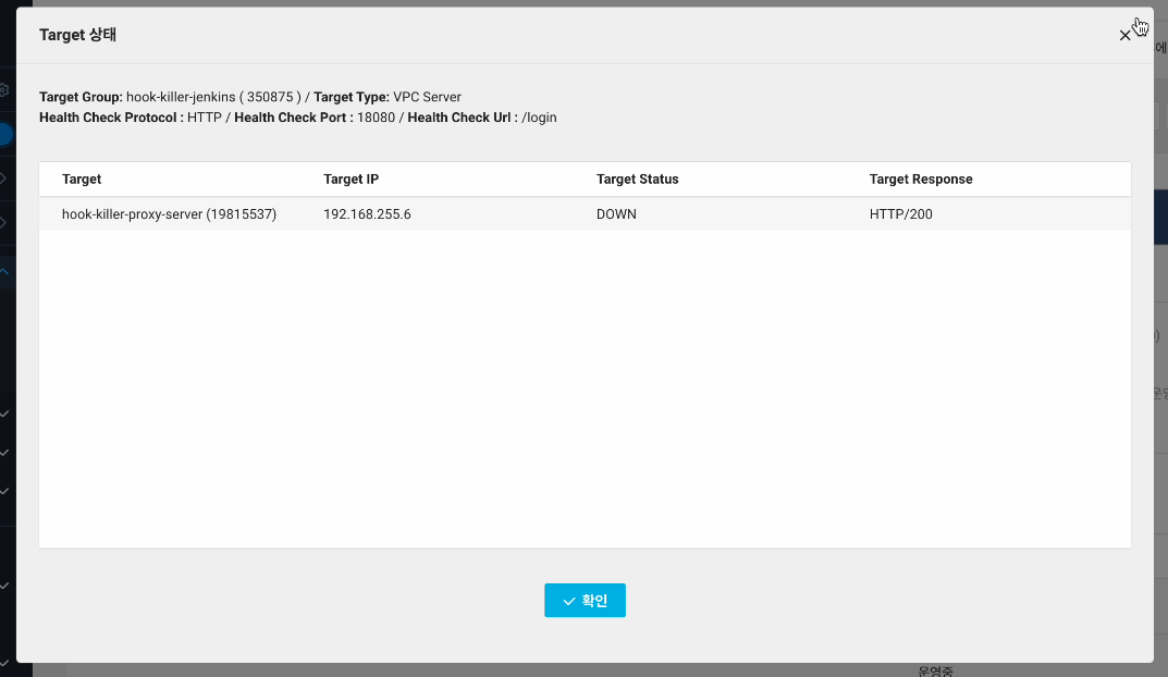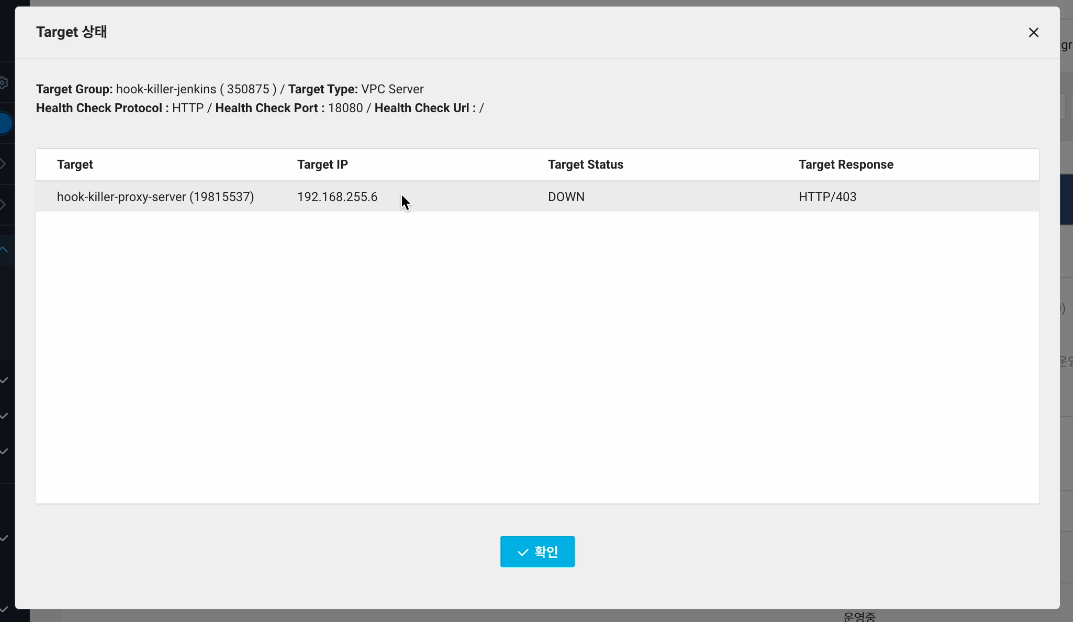 그래서 젠킨스 타겟 그룹의 상태를 확인해보니