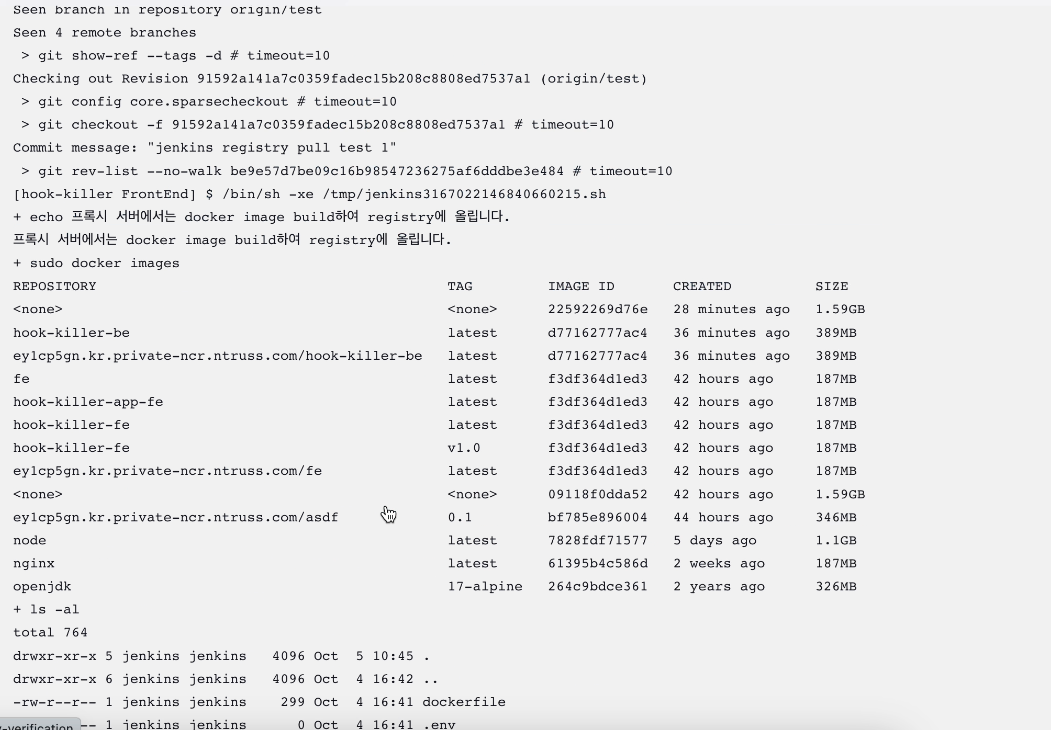 이 사진들은 아래 명령어로 젠킨스 실행 로그를 뜯어 본 것이다.