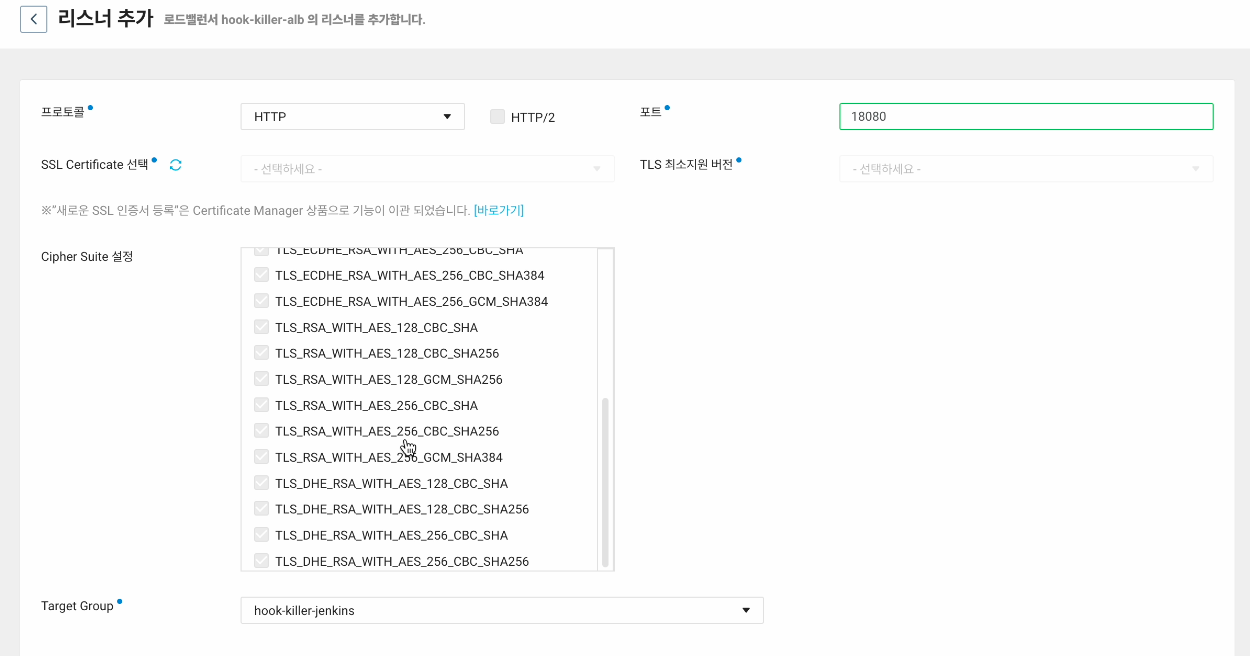 프록시 서버에 열린 젠킨스를 타겟 그룹에 추가하여