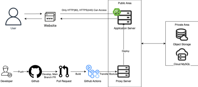프록시 서버를 거쳐 어플리케이션 서버로 보내야