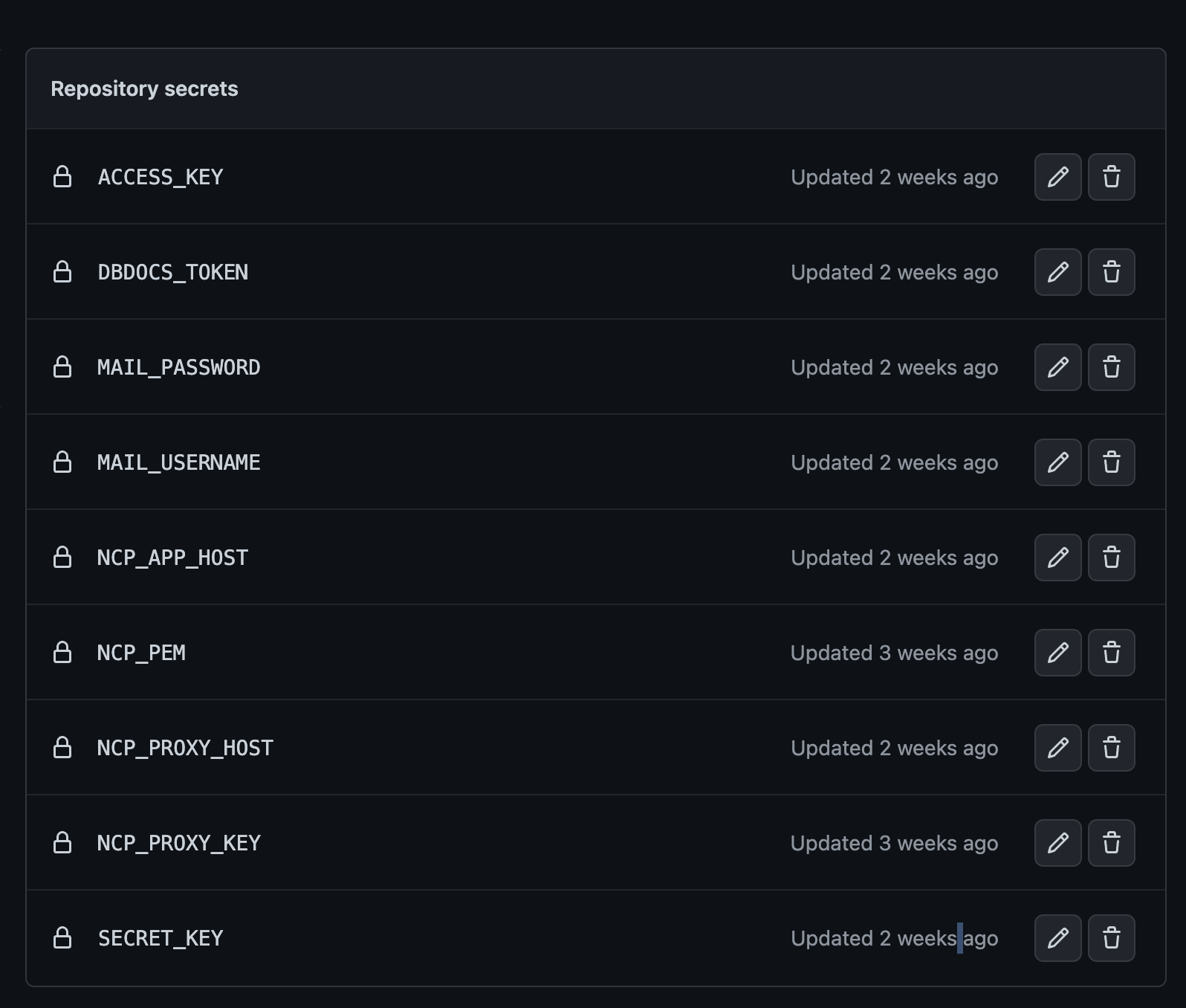 Github 레포지토리 설정에 잡아놓은 Secret Key들을 값으로 주어