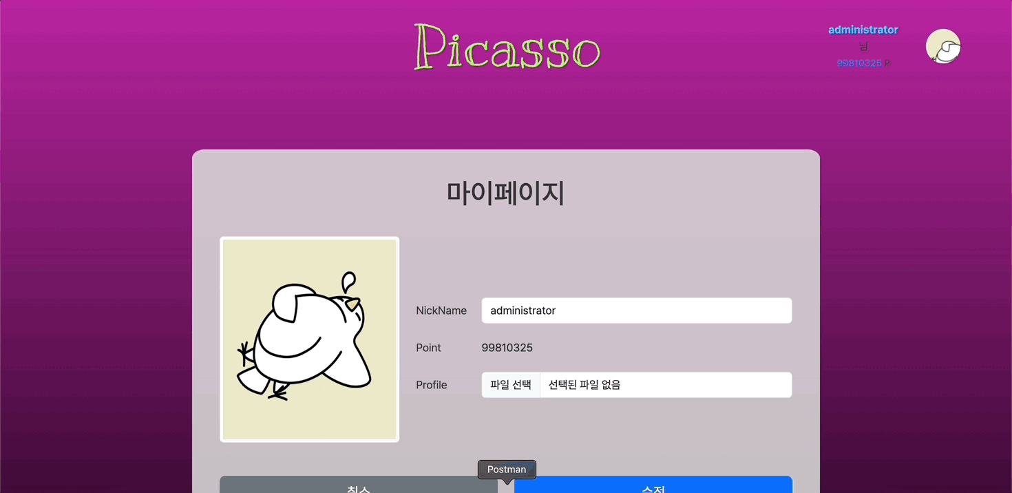 사용자의 프로필 사진을 수정하는 로직을 구현해놓았다.