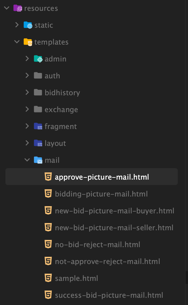 각 html 파일에는 실제로 메일이 발송되어