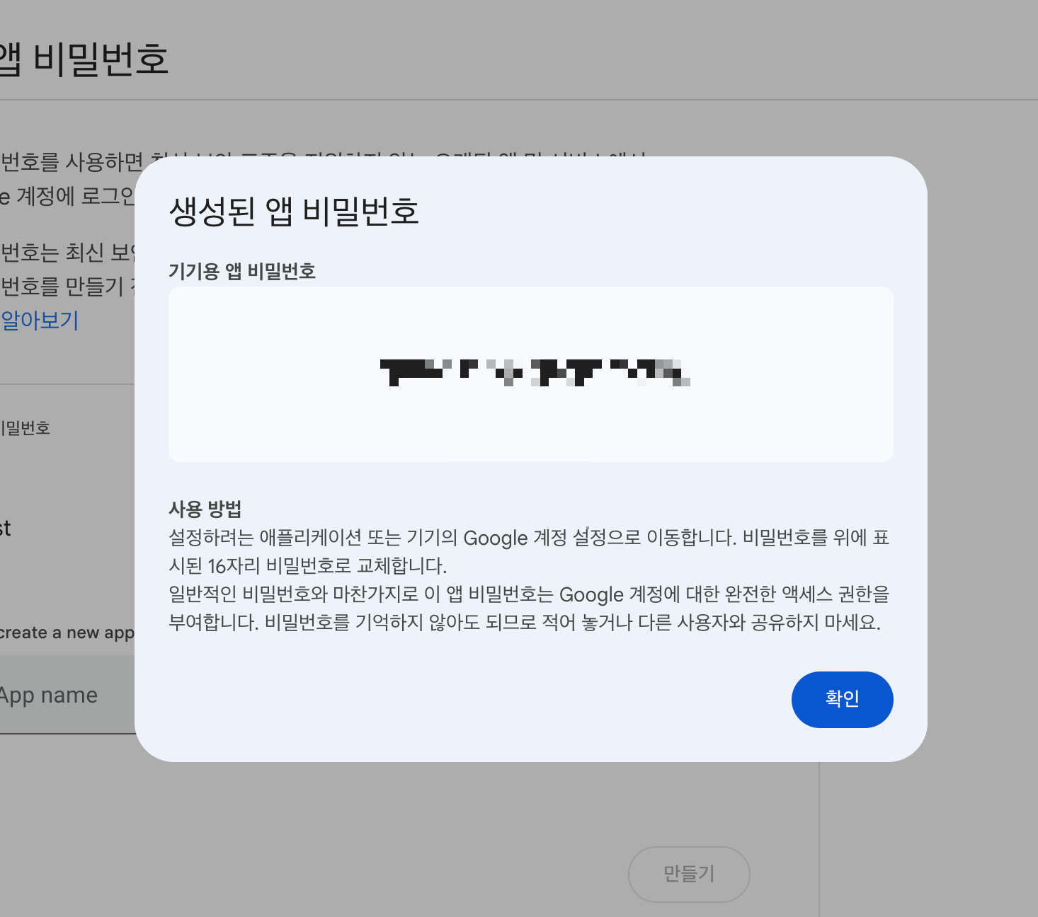 생성된 앱 비밀번호는 기억하고 있자.