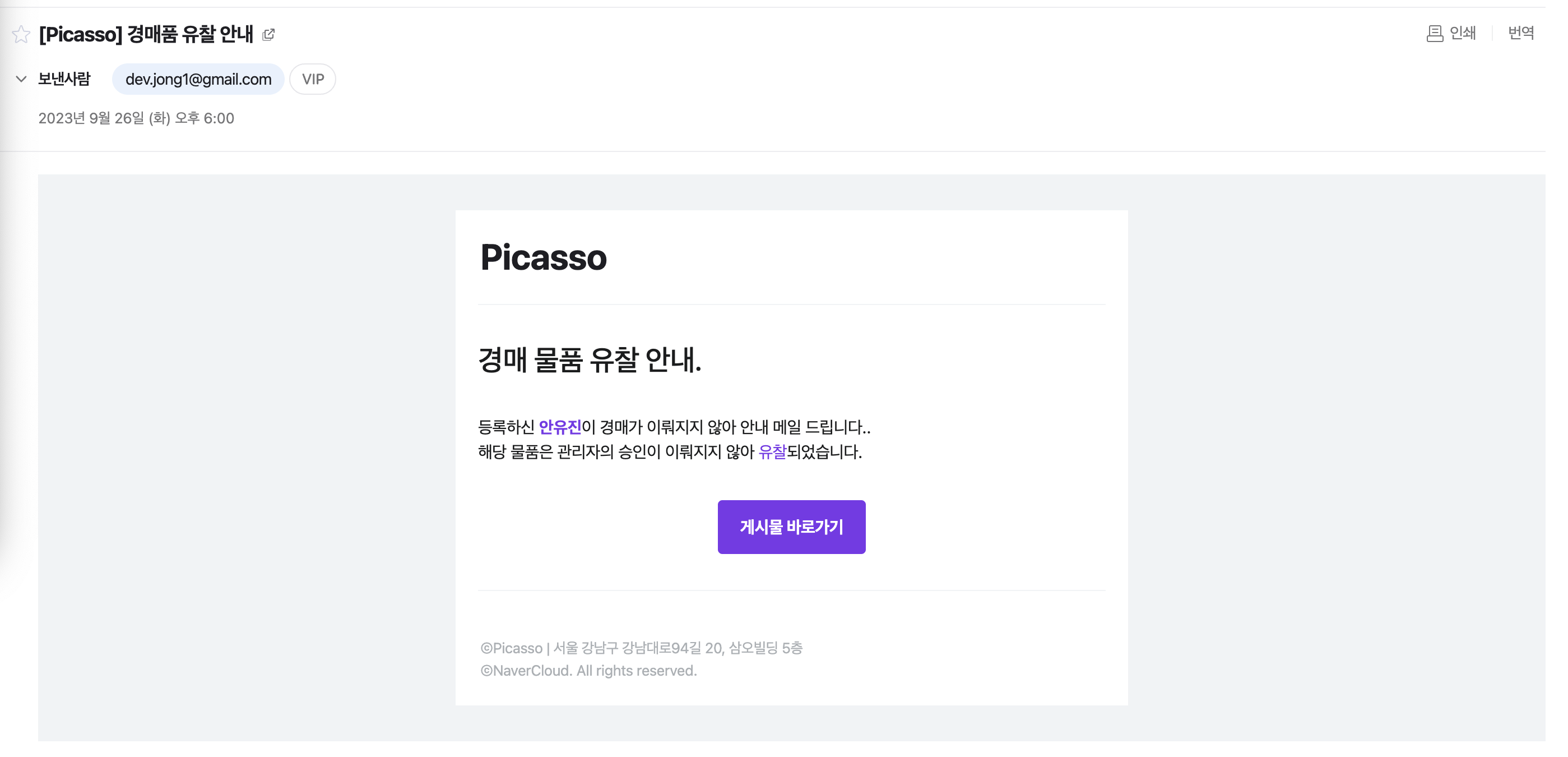 - 경매 작품 유찰 메일